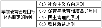 简述学前教育管理目标体系制定的原则。 作者:高老师 时间:2024-08-07 浏览 0 简述学前教育管理目标体系制定的原则。【正确答案】:(1)社会主义方向原则(2)保育与教育相结合的原则(3)民主管理的原则(4)整体效益原则【题目解析】:本题主要记住下表加粗关键词:口诀:结合方向整体管理。 📱 扫码体验刷题小程序 扫一扫使用我们的微信小程序