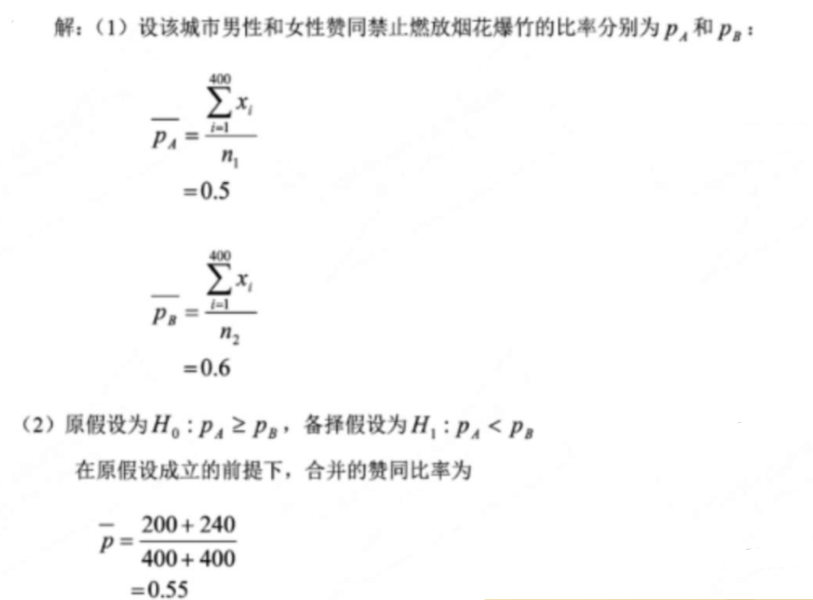 在对某城市禁止燃放烟花爆竹的民意调查中,已知接受调查的400名男性中有200人赞同禁止燃放烟花爆竹,接受调查的400名女性中有2 作者:高老师 时间:2024-08-07 浏览 2 在对某城市禁止燃放烟花爆竹的民意调查中,已知接受调查的400名男性中有200人赞同禁止燃放烟花爆竹,接受调查的400名女性中有240人赞同禁止燃放烟花爆竹。(1)求该城市男性、女性赞同禁止燃放烟花爆竹的比率;(2)该城市女性赞同禁止燃放烟花爆竹的比率是否比男性高(可靠性取95%)?请给出相应假设检验的原假设和备择假设。(Z0.05=1.645,Z0.025=1.96)【正确答案】: 📱 扫码体验刷题小程序 扫一扫使用我们的微信小程序