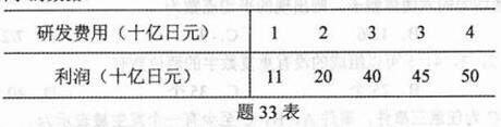 为考察研发费用与企业利润的关系,有人对日本5家大企业进行了调査,得到一组如题33表所示的数据: