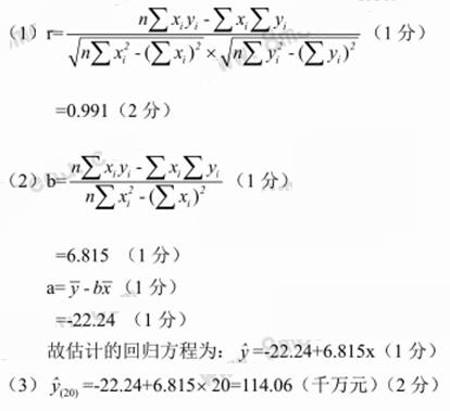要求: (1)计算楼盘总面积与总售价之间的相关系数。(3分) (2)建立总售价对楼盘面积的一元线性回归方程。(5分) (3)估计楼盘面积为20万平方米时的预期总售价。(2分)