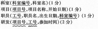 已知某个研究所中有多个科室,每个科室有多个职员,每个职员只在一个科室中,每个职员参加多种项目的研发,而每种项目的研发可由多个职员参加。 科室:科室编号,科室名; 职员:工号,职员名,出生日期; 项目:项目号,项目名称,开始日期。 每个职员参加某个项目,都有参加该项目的时间。 请根据上述语义完成以下操作: (1) 建立一个反映上述局部应用的ER模型,要求标注联系类型(可省略实体属性)。(5分) (2) 将ER模型转换为关系模型,要求标注每个关系模型的主键和外键(如果存在)。(5分)