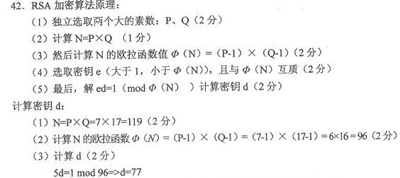 试述RSA加密算法的原理,并根据原理计算P=7、Q=17、e为5时对应的密钥d。 作者:高老师 时间:2024-08-07 浏览 1 试述RSA加密算法的原理,并根据原理计算P=7、Q=17、e为5时对应的密钥d。【正确答案】: 📱 扫码体验刷题小程序 扫一扫使用我们的微信小程序
