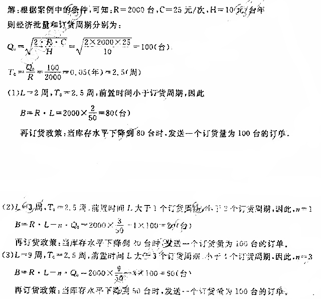 某电器商店每年销售2000台电饭煲,每次订货的成本为25元,每台电饭煲的库存持有成本每年l0元。请你根据以下情况制定相应的再订货 作者:高老师 时间:2024-08-07 浏览 0 某电器商店每年销售2000台电饭煲,每次订货的成本为25元,每台电饭煲的库存持有成本每年l0元。请你根据以下情况制定相应的再订货政策。(1)前置时间为2周;(2)前置时间为3周;(3)前置时间为9周。(一周按7天计算,一年按50周计算)【正确答案】: 📱 扫码体验刷题小程序 扫一扫使用我们的微信小程序