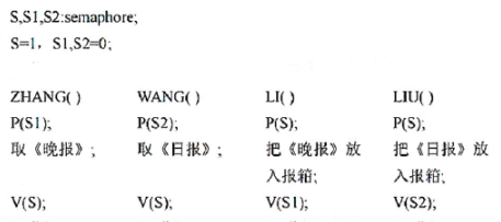 老张和老王共同使用一个报箱,该报箱每次仅能存放一份报纸,老张订阅《晚报》老王订阅《日报》,分别由邮递员小李和小刘投递试用P、V操 作者:高老师 时间:2024-08-08 浏览 2 老张和老王共同使用一个报箱,该报箱每次仅能存放一份报纸,老张订阅《晚报》老王订阅《日报》,分别由邮递员小李和小刘投递试用P、V操作进行同步管理。【正确答案】: 📱 扫码体验刷题小程序 扫一扫使用我们的微信小程序