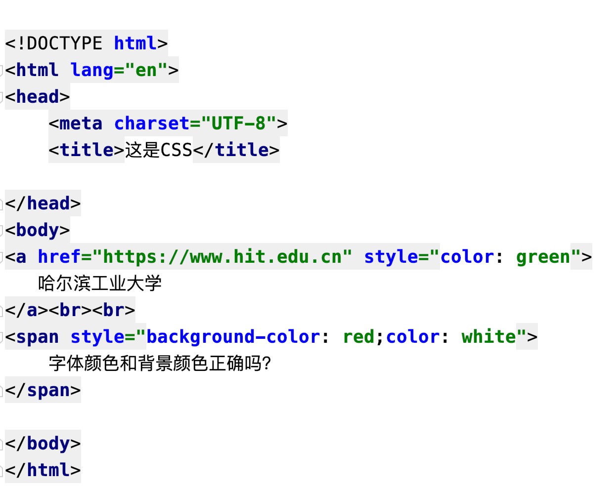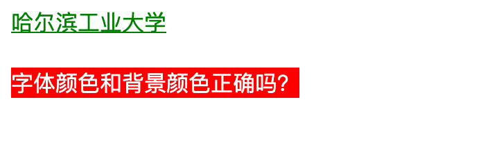 (2)用绿色字体显示“哈尔滨工业大学”这个链接,网址是 , http: //www.hit.edu.cn;