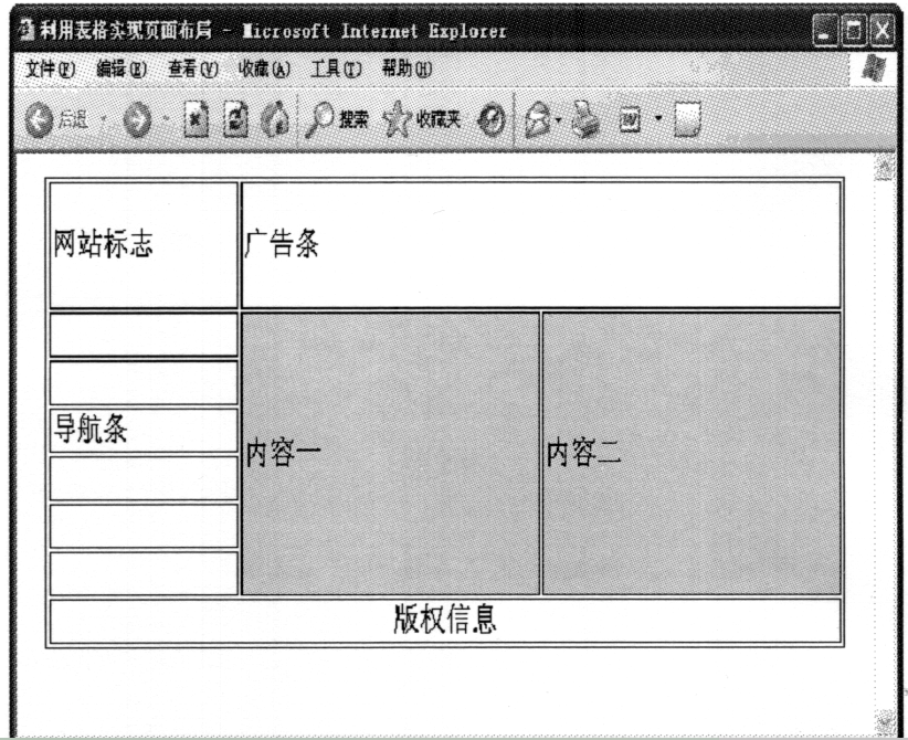 ③“网站标志”所在的单元格宽度150pixel,高度80pixel。