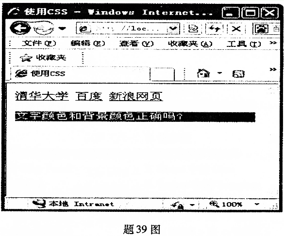 在页面中使用CSS样式表,实现如题39图所示功能。