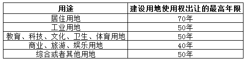 本题可从“教育、科技、文化、卫生、体育用地”入手。出让取得的建设用地使用权最高年限详见下表: