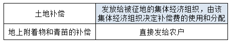 本题可从“土地补偿”入手。征地中的补偿发放解读如下: