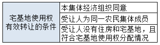 宅基地使用权有效转让的条件如下所示: