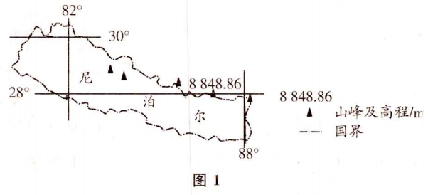 2020年12月8日,中国和尼泊尔两国元首共同向全世界宣布,位于中尼两国交界处的珠穆朗玛峰高程为8848.86米。图1为尼泊尔简图。据此完成21—23题。
