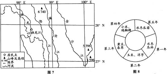 独龙族聚居的独龙江流域(图7)自然资源丰富,被称为“野生生物天然博物馆”。新中国成立前,独龙族农业生产以刀耕火种为主。水冬瓜地农业生产是独龙族传统农耕文化中最有特色的一种生产方式。水冬瓜是一种亚热带落叶阔叶树,生长快,落叶量大,喜光喜湿,固氮能力强。图8示意独龙族水冬瓜地的土地利用时序。新中国成立后,独龙族从原始社会直接过渡到社会主义社会。进入21世纪,国家对该民族实行重点扶持,目前该族已整族脱贫。