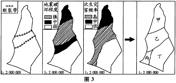 【题目解析】:本题考查城市区位选择。由图可知,甲、乙区域地震破坏严重,且次生灾害频率较高;丙区域次生灾害频率高;丁区域相对安全,适宜城市重建。