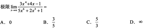作者:高老师 时间:2024-07-20 浏览 1 A、AB、BC、CD、D【正确答案】:A【题目解析】:因为是无穷比无穷型,可以使用洛必达法则,分子分母分别同时求导,一直求导直到求到72/1800x2的极限等于0。 📱 扫码体验刷题小程序 扫一扫使用我们的微信小程序