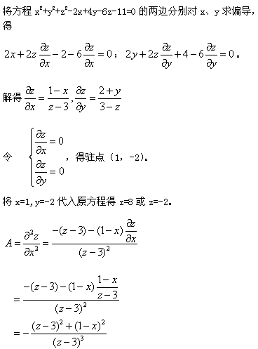 设z=z(x,y) 是由方程x2+y2+z2-2x+4y-6z-11=0所确定的函数,求该函数的极值( ) 作者:高老师 时间:2024-07-20 浏览 1 设z=z(x,y) 是由方程x2+y2+z2-2x+4y-6z-11=0所确定的函数,求该函数的极值( )A、极大值为3,极小值为-1B、极大值为5,极小值为0C、极大值为8,极小值为-2D、极大值为6,极小值为-1【正确答案】:C【题目解析】:【答案解析】 📱 扫码体验刷题小程序 扫一扫使用我们的微信小程序