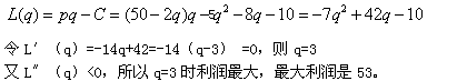 某产品的成本函数为,需求函数为,其中q为产量(需求量),P为价格,问该产品的产量为多少时利润最大?最大利润是多少? 作者:高老师 时间:2024-07-20 浏览 0 某产品的成本函数为,需求函数为,其中q为产量(需求量),P为价格,问该产品的产量为多少时利润最大?最大利润是多少?【正确答案】:q=3,53【题目解析】: 📱 扫码体验刷题小程序 扫一扫使用我们的微信小程序