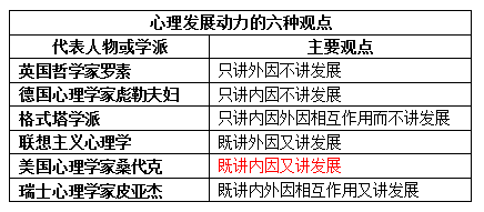 发展心理学的历史上,关于心理发展动力存在一些不同的看法,其中桑代克的观点是( ) 作者:高老师 时间:2024-08-11 浏览 1 发展心理学的历史上,关于心理发展动力存在一些不同的看法,其中桑代克的观点是( )A、只讲外因不讲发展B、只讲内因不讲发展C、既讲外因又讲发展D、既讲内因又讲发展【正确答案】:D【题目解析】: 📱 扫码体验刷题小程序 扫一扫使用我们的微信小程序