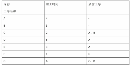 某项目作业共有A、B、C、D、E、F、G七道工序,工序之间的关系及工序时间如表所示: 要求:用箭线表示法绘制该项目的网络图。( 作者:高老师 时间:2024-08-12 浏览 0 某项目作业共有A、B、C、D、E、F、G七道工序,工序之间的关系及工序时间如表所示: 要求:用箭线表示法绘制该项目的网络图。(网络图中标注出各工序名称及时间) 【正确答案】:【题目解析】: 📱 扫码体验刷题小程序 扫一扫使用我们的微信小程序