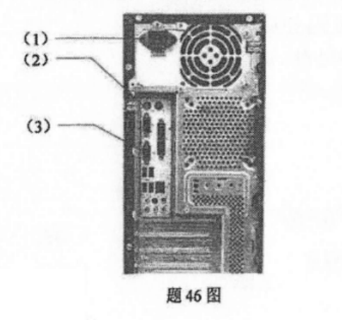 写出题46图所示的微型计算机主要接口名称。 作者:高老师 时间:2024-07-21 浏览 2 写出题46图所示的微型计算机主要接口名称。【正确答案】:(1)电源接口或者电源(2)PS/2接口或者PS/2或者键盘接口或者鼠标接口;(3)VGA接口或者VGA或者显示器接口; 📱 扫码体验刷题小程序 扫一扫使用我们的微信小程序