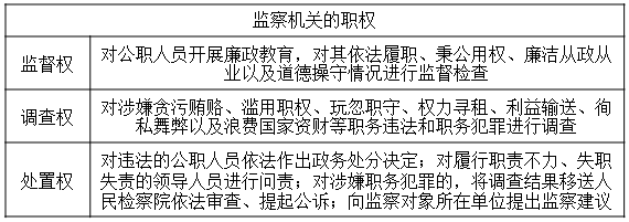 (1)监督权。对公职人员开展廉政教育,对其依法履职、秉公用权、廉洁从政从业以及道德操守情况进行监督检查。