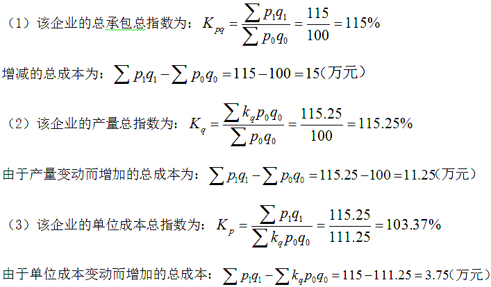 (2)该企业的产量总指数及由于产量变动而增加(减少)的总成本;