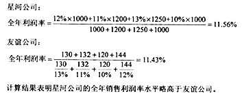 星河公司2009年四个季度的销售利润率分别是12%、11%、13%和10%,同期的销售额分别是1000万元、1200万元、125 作者:高老师 时间:2024-07-21 浏览 0 星河公司2009年四个季度的销售利润率分别是12%、11%、13%和10%,同期的销售额分别是1000万元、1200万元、1250万元和1000万元。友谊公司同期的销售利润率分别是13%、11%、10%和12%,利润额分别是130万元、132万元、120万元和144万元,试通过计算比较两家公司2009年全年销售利润率的高低。【正确答案】: 📱 扫码体验刷题小程序 扫一扫使用我们的微信小程序