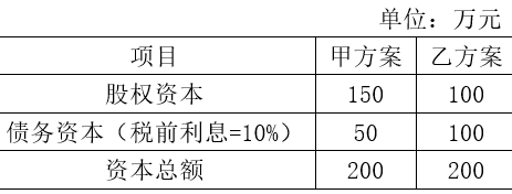 (1)两个方案的债务资本成本=利息×(1-所得税率)=10%×(1-25%)(1分)=7.5%(1分)