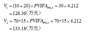 某企业聘请一名技术人员来企业工作五年,该企业提出两套待遇方案: 第一套方案:五年内每年给予住房补贴10万元,年薪20万元,均在年 作者:高老师 时间:2024-07-22 浏览 0 某企业聘请一名技术人员来企业工作五年,该企业提出两套待遇方案: 第一套方案:五年内每年给予住房补贴10万元,年薪20万元,均在年末支付; 第二套方案:现在给予住房一套,价值70万元,每年年末发放薪酬15万元。 假设目前存款的年利率为6%。 已知:PVIF6%,5=0.747;PVIFA6%,5=4.212 要求:(1)分别计算两方案的现值; (2)假设不考虑其他因素,你认为该技术人员应接受哪一套方案。 (计算结果保留小数点后两位)【正确答案】:(1) (2)由于第二套方案的现值高于第一套方案的现值,第二套方案能获得较高的收益,因此,对于该技术人员来讲选择第二套方案更为有利。 📱 扫码体验刷题小程序 扫一扫使用我们的微信小程序