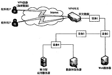 某大学暑假期间为教职员工开办了VPN远程接入服务,员工在校外通过登录界面输入用户名和口令后,就可以访问仅供本校师生使用的各类信息资源。为了实现信息隔离与访问控制,在校园网不同的网络区域之间部署了防火墙等相关设施。