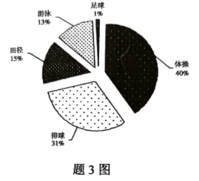 题3图信息是某城市人们对各种体育运动项目感兴趣的比例饼状图。
