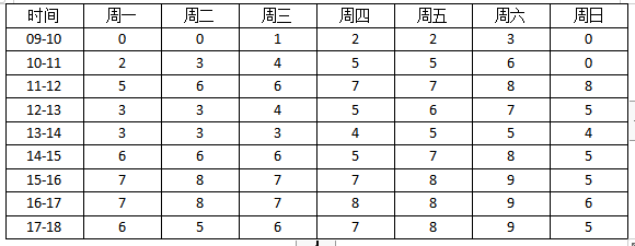 下列数据显示的是本地一家小型但独家专营的服装商店的货物销售数据。销售数据被分解为每天各时段的货物销售数量。