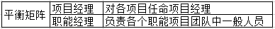 平衡矩阵:设有职能经理和项目经理,平衡矩阵中对各项目均任命项目经理,并且赋予他应有的职权与责任,项目经理以对部门及该部门中主要工作(或重要)人员的控制为主,由职能经理负责各个职能项目团队中一般人员的管理