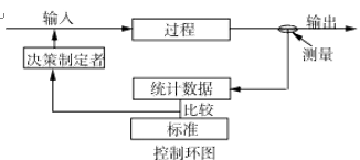 (1)过程:是需要实施控制的系统的一部分。 (2)输出:过程的结果并可作为控制的基础。 (3)测量:根据输出收集适当的数据,常常按例行的时间间隔进行。 (4)统计数据:从所收集的输出数据中获得的信息,为了与既定标准进行比较,有可能利用几个不同时期的数据。 (5)标准:反映过程输出期望的结果。 (6)比较:考虑表明实际绩效的统计数据与表明期望绩效的标准之间的差异。因此,比较可以作为采取措施的基础。 (7)决策制定者:分析比较结果,并结合其他所有的相关信息,管理输入以实现达成一致标准规定绩效的个人或团体。 (8)输入:过程需要的各种类型的实物、资金、数据输入,输入的特征决定过程实际绩效。