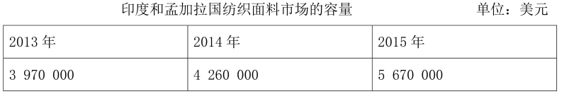 公司生产的纺织面料销售到印度和孟加拉国,在那里被加工成家纺产品。两国纺织面料市场的容量见表6。