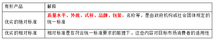 有形产品的优劣,既有绝对标准、又有相对标准。绝对标准包括( ) 作者:高老师 时间:2024-07-23 浏览 1 有形产品的优劣,既有绝对标准、又有相对标准。绝对标准包括( )A、质量水平B、外观C、式样D、品牌E、包装【正确答案】:ABCDE【题目解析】: 📱 扫码体验刷题小程序 扫一扫使用我们的微信小程序