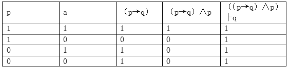 用真值表来验证((p→q)∧p)├q是否为有效式。 作者:高老师 时间:2024-07-24 浏览 0 用真值表来验证((p→q)∧p)├q是否为有效式。【正确答案】:能必然得出结论,因为相容选言推理否定部分选言支,可以肯定其他选言支。【题目解析】:((p→q)∧p)├q的真值表如下:[图1]由上表可知,((p→q)∧p)├q为永真式,所以是有效式。 📱 扫码体验刷题小程序 扫一扫使用我们的微信小程序
