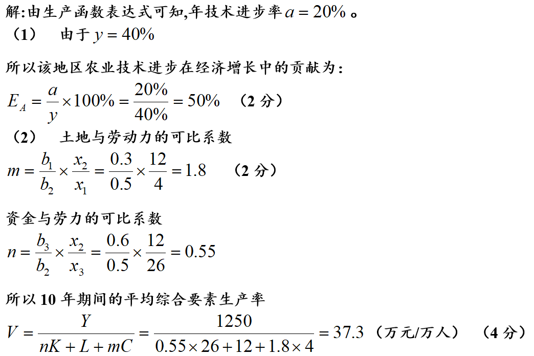 计算:该地区农业技术进步在经济增长中的作用以及综合要素生产率。