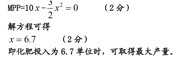 某地区过去 10 年的农业生产函数表达式为: