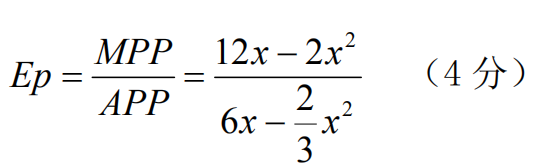 MPP=12X-2X²=0 (2 分)
