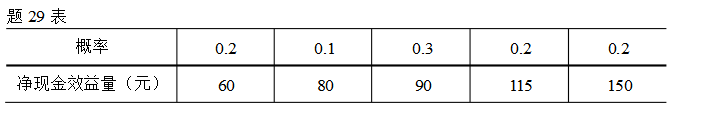 问题:(1)如果此方案的标准差为30.58,请计算期望值和变差系数; (2)如果投资额为300元,寿命为4年,期末无残值。此方案风险水平相当的贴现率为8%,请计算它的净现值,并确定是否采用这一方案。(总现值系数(8%,4)=3.312)