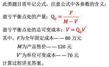 甲厂商生产一种产品的单件可变成本为 70元 ,售价 120元 ,每年固定成本为 80万元 ,求企业盈亏平衡点处的产量及盈亏平衡点时的总可变成本 。