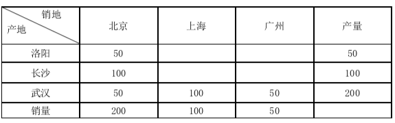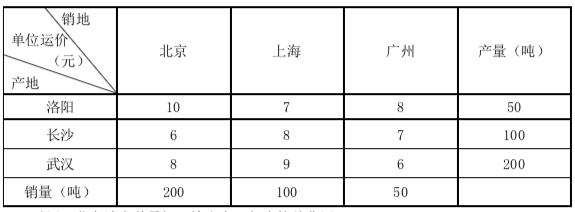 一公司在洛阳、长沙、武汉的分厂生产工艺用水晶玻璃,并运往北京、上海、广州三地销售,产量、销量及单位运价如下表所示。
