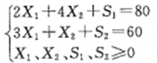 令X1=X2=0得基础可行解(X1,X2,S1,S2)=(0,0,80,60) (2分)