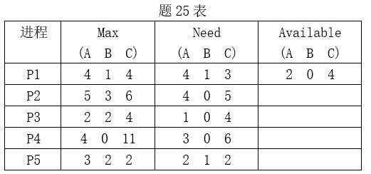 采用银行家算法,若出现题25表所示的资源分配情况,则存在的安全序列是_______。 作者:高老师 时间:2024-07-27 浏览 1 采用银行家算法,若出现题25表所示的资源分配情况,则存在的安全序列是_______。【正确答案】:P3、P5、PI、P2、P4 📱 扫码体验刷题小程序 扫一扫使用我们的微信小程序