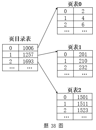 某计算机系统的主存按字节编址,逻辑地址和物理地址都是32位,其内存管理采用两级页表的分页存储管理方式。逻辑地址中页号为10位,页内偏移地址为10位。该计算机系统的两级页表结构如题38图所示,图中数值均为十进制数。