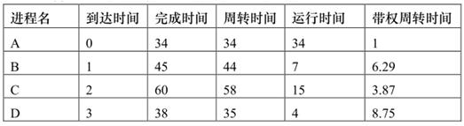 平均周转时间=(34+44+58+35)/4=42.75 ;平均带权周转时间=(34/34+44/7+58/15+35/4)/4=4.98
