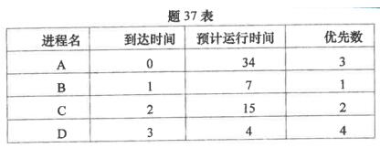 有4个进程A、B、C、D,它们的到达时间、预计运行时间以及优先级数值(优先级数值越小,表示优先级越髙)如题37表所示。