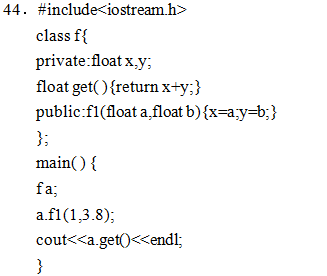 作者:高老师 时间:2024-07-27 浏览 0 【正确答案】:float get( ){return x+y;} 该成员函数的权限错误,改成public。 📱 扫码体验刷题小程序 扫一扫使用我们的微信小程序