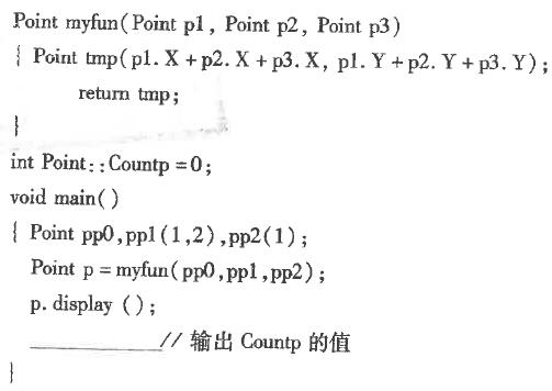 作者:高老师 时间:2024-07-27 浏览 0 【正确答案】:第一空:friend Point myfun(Point p1,Point p2,Point p3)第二空:cout<【题目解析】:main()函数中使用了Point p=myfun(pp0,pp1,pp2),所以在类Point中定义友元函数,第一个空填:friend Point myfun(Point p1,Point p2,Point p3)。 输出Countp的值,Countp是类的静态公有成员,通过类来访问:类名::静态公有成员名。所以第二空填:cout< 📱 扫码体验刷题小程序 扫一扫使用我们的微信小程序