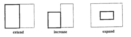 SYNONYMS MAY DIFFER IN THE RANGE AND INTENSITY OF MEANING. SOME WORDS HAVE A WIDER RANGE OF MEANING THAN OTHERS. INCREASE, EXTEND AND EXPAND SHARE A GENERAL SENSE BUT HAVE DIFFERENT IMPLICATIONS. EACH OF THE THREE TERMS EXPRESSES A DIFFERENT KIND OF ENLARGEMENT. THIS CAN BE ILLUSTRATED BY THE FOLLOWING GRAPHS.